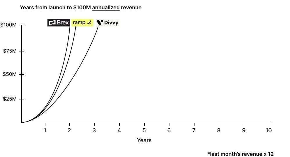 Realmente incrível: Brex saiu de 0 para $100MM de receita em 16 meses.