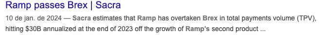 Dois anos depois, o cenário era outro. A Brex já sentia a pressão competitiva: a Ramp — fundada dois anos após a Brex — já processava um volume maior.