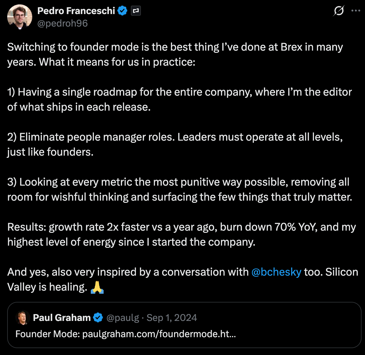 Founder Mode não só no topo, mas pela organização toda.